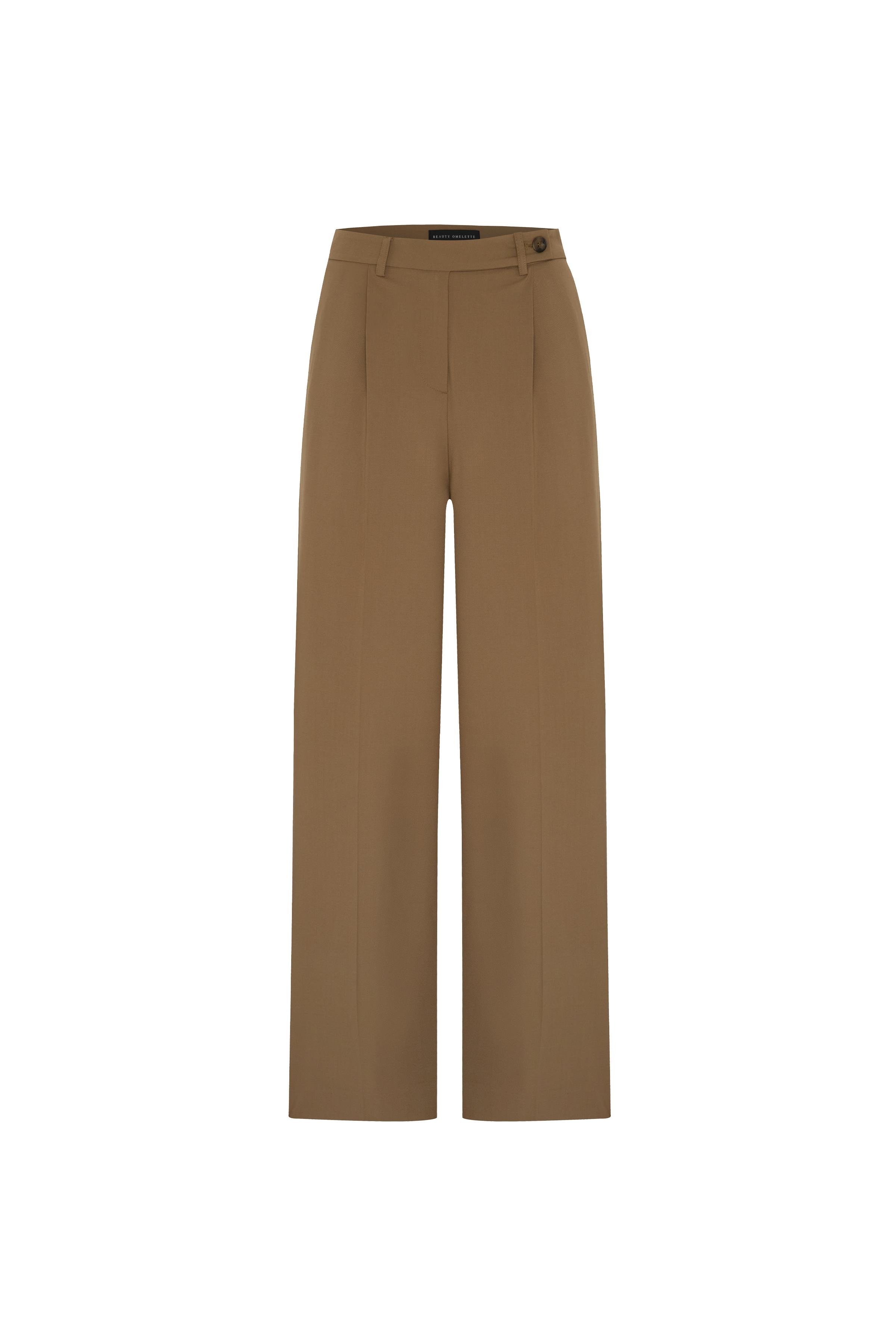 Camel Tek Pileli Yünlü Bol Pantolon
