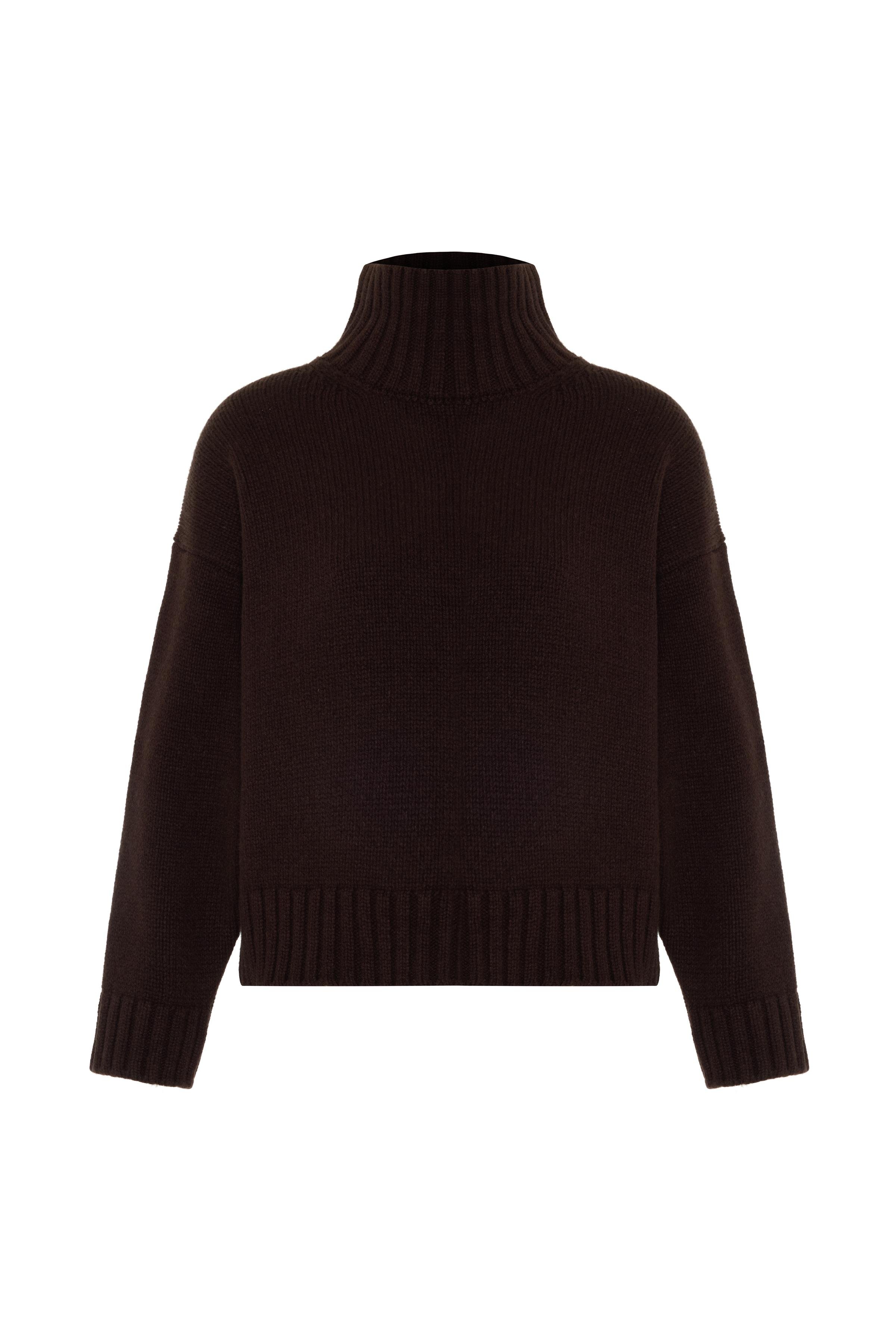 Kahverengi %100 Kaşmir Balıkçı Yaka Kazak