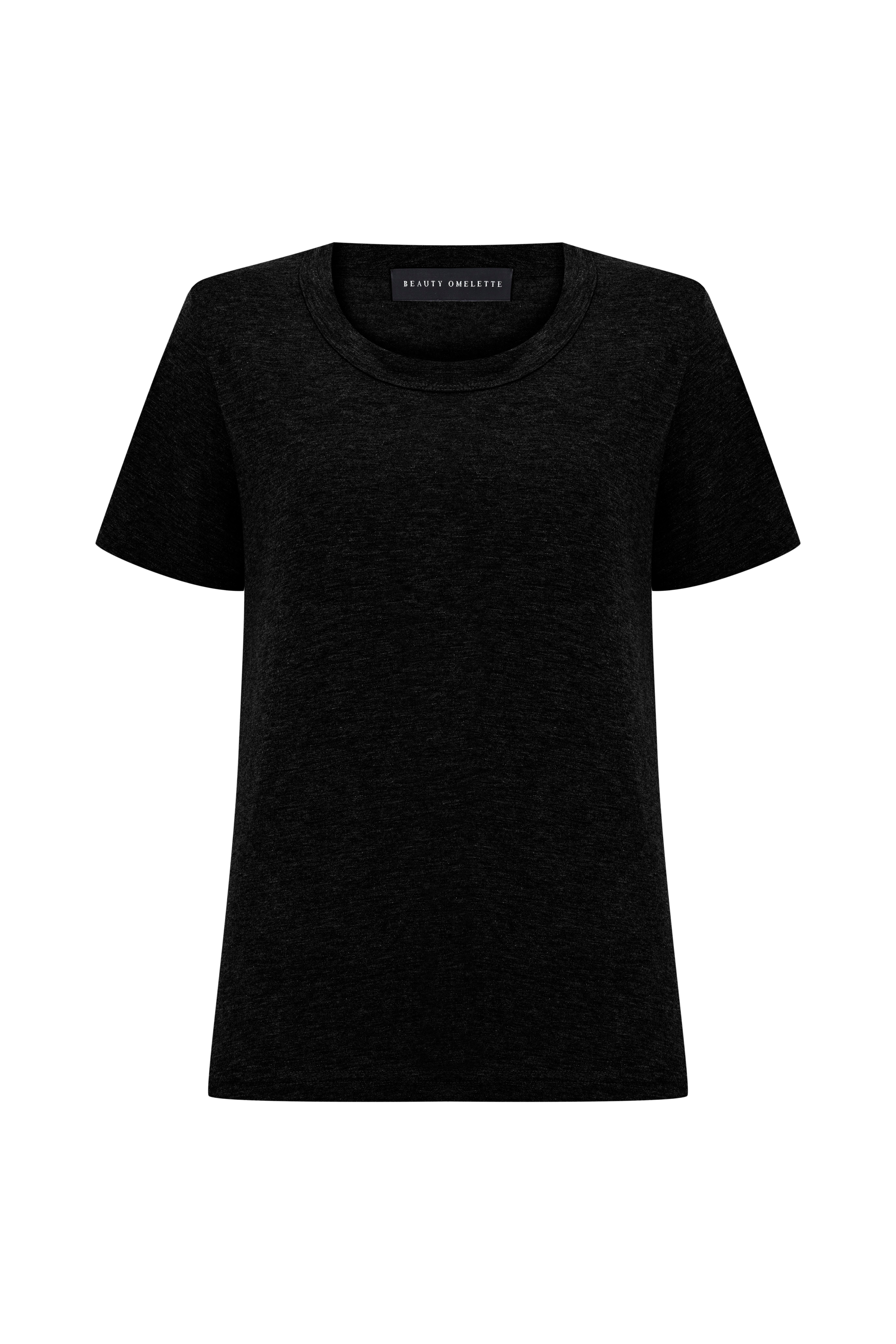 Siyah Bisiklet Yaka Flamlı Kısa Kol Tshirt